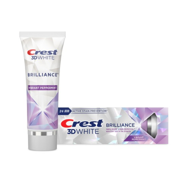 Kem đánh răng Crest 3D White Brilliance trắng răng chuyên sâu. Đây là dòng kem đánh răng làm trắng răng chuyên sâu của Crest. Làm sạch mảng bám gây vàng răng chỉ sau 3 ngày. Đồng thời, giảm sự ê buốt trong quá trình làm trắng răng, bảo vệ nướu chắc khoẻ, đẩy lùi viêm nướu, ngừa sâu răng. Khi sử dụng kết hợp cùng miếng dán trắng răng của Crest, hiệu quả làm trắng sẽ tăng gấp đôi so với việc sử dụng các kem đánh răng thông thường.