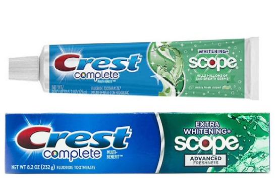 Crest Complete Extra Whitening Scope là dòng kem đánh răng Crest có công dụng làm sạch răng đồng thời loại bỏ đến 95% mảng bám, đánh bật các vết ố vàng, chăm sóc răng khoẻ mạnh và làm trắng răng sau 3 ngày sử dụng.