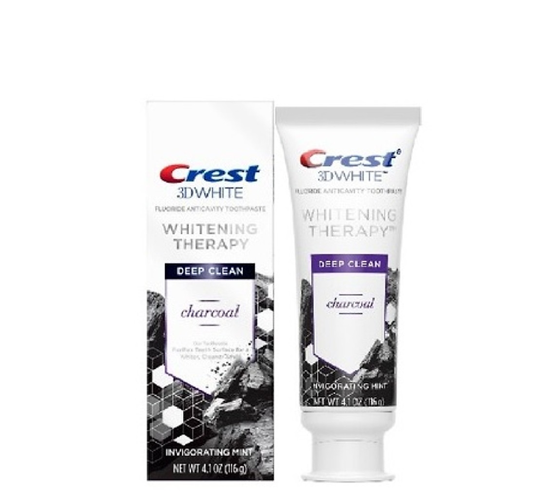 Kem đánh răng Crest 3D White Charcoal không chỉ làm trắng răng thôi, mà còn là một liệu pháp giúp răng sạch sâu bằng than hoạt tính. Than hoạt tính kết hợp với tinh dầu trà xanh có thể làm trắng răng bằng cách loại bỏ vết ố vàng, vệt màu trên bề mặt răng. Bạn sẽ có thêm cảm giác sạch mát với hương bạc hà cho một ngày mới. Kem có hai lớp đen trắng, làm trắng mà không bị lẫn bột than hoạt tính. Ngoài ra kem đánh răng Crest 3D White Whitening Therapy Charcoal có thành phần Flouride 0.243% tái khoáng men răng bị suy yếu giúp răng chắc khoẻ và ngừa sâu răng.