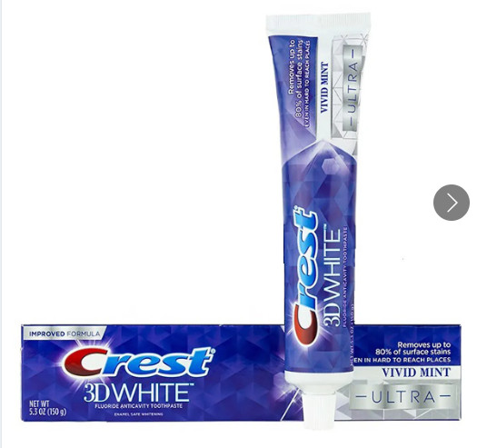 Kem đánh răng Crest 3D White Vivid Mint Ultra là dòng sản phẩm giúp làm trắng răng, ngăn ngừa sâu răng, giữ răng chắc khoẻ và tái khoáng men răng. Hương thơm bạc hà the mát, sảng khoái giúp khử mùi hôi hiệu quả. Kem đánh răng Crest Vivid Mint Ultra có khả năng loại bỏ đến 80% mảng bám và vết ố vàng trên răng do chứa các hoạt chất làm trắng như Titanium, Sodium Saccharin...